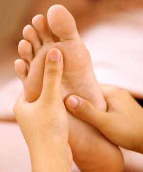 A form of acupressure applied to specific points on the feet, hands, and ears. These points correspond to certain organs and body systems to promote relaxation and improve body function.